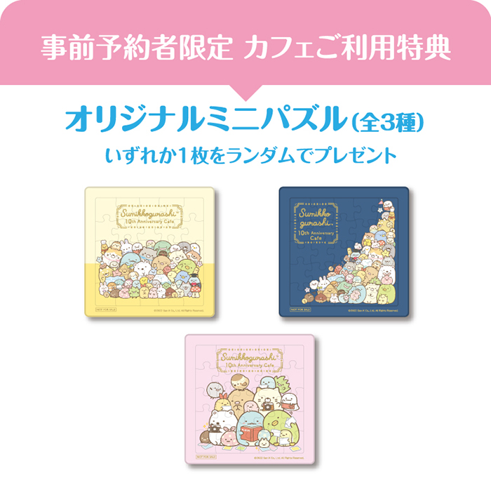 すみっコぐらし10周年コラボカフェ「すみっコぐらし 10th Anniversary Cafe」は、コラボカフェ公式サイトから事前申し込みのみです。電話、メール、FAXでの申し込みはできません。